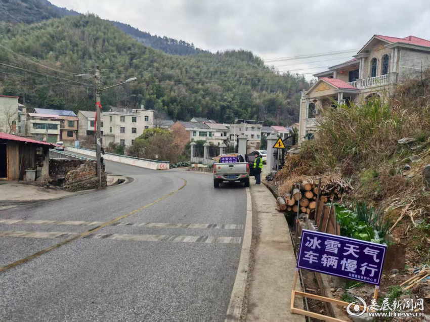 在惯例路面巡查基础上,加密对山区以背向阴路段、桥梁、急弯陡坡等要点部位的巡查频次,保证第一时间发现路面结冰、积雪、落石等危险。针对排查发现的危险路段,当即设置“雨雪气候 车辆慢行”“桥面结冰 减速慢行”等警示标志标牌,在急弯处增设反光警示桩,全方位提示过往车辆留意行车安全。